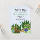 A cute birthday invitation, a design featuring whimsical forest friends like cute birds, a little squirrel, a chipmunk and a butterfly playing among the woodland setting. These cute animals will be sure to set the tone for your forest theme birthday party, add your information as desired.