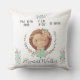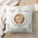 a perfect gift for yourself or others is this super cute birth stats throw pillow with floral wreath and bouquet of daisy in pastel colours with baby forest friends. All info is in handwritten font. Check our store for more items from this collection