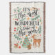 This beautiful holiday blanket features watercolor woodland animals (a bird, deer, squirrel, and rabbit), a Christmas tree, greenery, berries, and stars over an ivory coloured background. Stylish typography reads, "It's the Most Wonderful Time of the Year!"