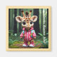 Meet our adorable giraffe baby, dressed in vibrant, beautifully patterned clothing, with a charming little bag slung over his back. Set against the lush backdrop of a whimsical forest, this delightful design captures the spirit of curiosity and adventure. Perfect for adding a touch of playfulness to any space.