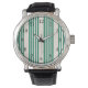Forest green and beige five stripes pattern watch