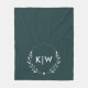 Forest Green and White | Modern Initials Monogram Fleece Blanket