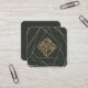 Stylish forest green business card, featuring a gold line geometric abstract design with a customisable QR Code. Add your own website URL in the personalisation section, to generate a new QR Code.