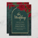 Forest Green Gold RED Roses Winter Wedding Invitation