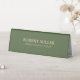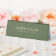 Simple, minimalistic, forest green linen texture imitation conference tent sign with a customizable gold typography.