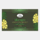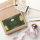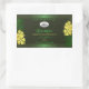 Make a lasting impression with this elegant and exotic product label design featuring cute yellow hawaiian flowers and green palm leaves on a forest green background. A cool palm leaf shadow matching to the shimmery border frame.