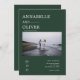 Elegant, minimal photo wedding invitation featuring forest green background, single photo, bride's and groom's name in bold capital lettering. Personalize with wedding date location etc.