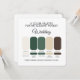 Each color swatch includes clear hex color codes, making it easy to coordinate wedding invitations, florals, table décor, linens, and stationery. Ideal for elegant, woodland, fall, or winter weddings.