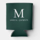 Forest Green Wedding Favour Monogram Name Heart Can Cooler