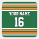 Forest Green with Orange White Stripes Team Jersey Square Sticker