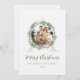 Forest Green Wreath Gold Monogram Photo Christmas Holiday Card
