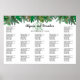 Forest greenery, monogrammed wedding seating chart poster. Green leaves and ferns make a border across the top of this chart ready to customise by section. Seat guests alphabetically or by table number / name. Light green initial at the top with first names of the couple and wedding date.