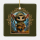 Forest Guardian Cat – Whimsical Fantasy Animal Ceramic Ornament