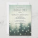 Rustic dinner rehearsal invitation with spruce trees decorated with fairy lights.