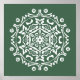 This white mandala sits on a forest green background. The colours are peaceful. Part of the Mola Mandala Collection.