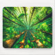 This mousepad has a forest pictured on it.