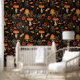 Charming wallpaper features and AI generated digital art pattern of mushrooms, leaves and other forest path elements. Perfect for accent walls and all sorts of DIY home decor projects!