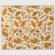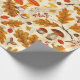 Forest mushrooms and autumn flora on cream wrapping paper