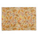 Forest mushrooms and autumn flora on ochre pillowcase