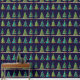 Forest of colourful cartoon style Christmas fir trees decorated with many with red, yellow, green white balls and gift wrap.