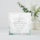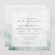 Forest evergreen pine tree watercolor background in a lightly, brighter green washed mountain scene. Casual, yet elegant typography with the rustic background of the mountains is a refreshing and subtle design. Works well with winter, mountain, nature wedding themes. A unique Ampersand anchors the two names.
