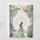 Forest Sage Green Dress Pink Flowers 15 Mis Quince Invitation