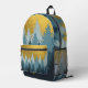 A beautiful design showcasing trees in a forest and a golden sky backpack. Colour tones include neutral blue tones and gold. A rustic design ideal for Autumn, Fall, Winter home decor and the festive holiday season.
