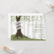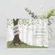 A wedding rehearsal dinner invitation featuring an illustration of a tree with roots on a hill of green grass. Tree has banner wrapped around it. Personalise with names.Row of trees in the background. Leaves are green. Personalise the text with details of your occasion.