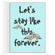 Featuring snuggling birds against an abstract background. Inside words: "Let's stay like this forever"