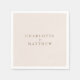 Simple Wedding Cocktail Napkins. Blush background. Bride & Groom Names Gold text.