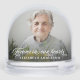 A personalised memorial photo snow globes with the phrase “Forever in our hearts” and a loved one's name offers a meaningful tribute to a beloved family member. This custom remembrance design features space for a photo on each side, beautifully accented by elegant script and refined serif text to honour their legacy with grace and dignity. Ideal for sympathy gifts, funeral mementos, or keepsake displays, this snow globe preserves special memories in a touching and timeless way. The soft snow effect adds a peaceful element, making it a heartfelt way to remember and celebrate someone who remains deeply loved and never forgotten.