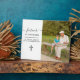 Elegant photo remembrance plaque in loving memory of a much loved family member. The remembrance wording reads "forever in our hearts" and is lettered in handwritten script and uppercase typography. You can add your custom text, such as In loving memory of ... and the photo template is ready for you to add one of your treasured pictures. The design is finished with a cross, which you can remove if you wish (click "customise further").