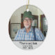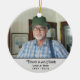 This unique ornament is a special way to commemorate the life of your loved one. This memorial ornament is personalised with your favourite photo of them, their name and birth and death years. On the reverse side is a place for an additional photo; (shown with a photo of beach dunes) and an overlay reads "In loving memory of a life so beautifully lived and a heart so deeply loved." You can customise it however you like. Display this unique and special keepsake year round to remember how special they were to you.
