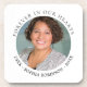 Personalise this simple coaster with the photo and details of your loved one. Design features a photo template with a custom text "Forever in our hearts" and details of your loved one in classic modern black typography on a clean white background. Perfect keepsake and addition for funeral memorial service reception, wake or celebration of life event. Honour the memory of your dearly departed with this beautiful memorial keepsake. Our heartfelt condolences to you and family during this difficult time.