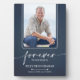 A 5" x 7", or choose your size, remembrance keepsake plaque with a built-in easel on the back, features a photo of your loved one, their name, and birth-death dates with "Forever in our Hearts" in chic lettering on a blue jean denim pattern. MATCHING items in our collection.