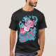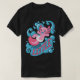 I give wanted to give this a 4 instead of a 5 because these Basic DARK T0shirts run unexpectedly SLIM or Narrow. Which is great if you do not have a potbelly, but I have a paunch. It isn't the shirt's fault that I've got a beer belly. The design and shirt itself is a quality cotton shirt. The color is more of a deep purple, but still a very pretty color. The Basic DARK T-shirts run a bit SLIMMER than the Basic Ts. The neck is a fraction narrower (or seems to be narrower) also. I'm a paunchy middle-aged woman and my neck is 12 inches (31cm) thick and the neckline fell about the same as in the photo of the man, and I had the desire to tug it a bit. So if you're a thick necked man or like loose shirts, be aware these are slimmer shirts. Once I get rid of my lockdown paunch it'll look great. The shirt washed well in cold water with no apparent bleeding. We don't have a dryer, so it hung dry. Did not shrink. Love the colors and the design. The design looks smaller on my shirt than it does on the model on-line. But still, it looks good on the shirt. The printing looks as it does on the model, just the size seems fractionally smaller. Washed garment in cold water, hung dry and design appeared unaffected.