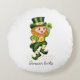 Forever Lucky Green Gnome & Clover on White Round Cushion