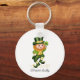 Forever Lucky Green Gnome & Monogram on White Key Ring
