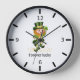 Cute forever lucky green gnome holding a clover on white background. Text can be personalised.