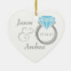 Forever Ring wedding engagement ornament. Featuring a diamond solitaire and border that says THE BEGINNING OF FOREVER. Customise it with the Bride and Groom's name and wedding date. Perfect engagement gift or first Christmas gift. Also available on T-shirts, apparel, tote bags, mugs, invitations and more. PinkInkArt original!