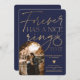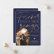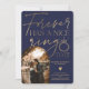 Forever has a nice ring to it, Modern script photo arch faux gold foil and navy blue engagement announcement with an engagement ring illustration. All the colours are editable.