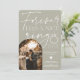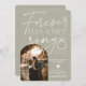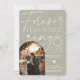 Forever has a nice ring to it, Modern script photo arch sage green grey and white engagement announcement with an engagement ring illustration. All the colours are editable.
