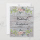 This wedding design features delicate floral borders on a rustic country barnboard background. The romantic design is perfect for a spring or summer wedding and the subtle use of flowers adds a touch of elegance to the overall look.