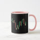 Forex candlestick chart with fractal indicator. Symbols of the Forex market. Stock exchange chart of the dollar, pink green black colours. Perfect elegant gift for a female trader. A beautiful addition to the interior of a business man.