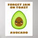 Cute Avocado character with text that reads: "Forget jam on toast, Avocado".