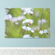Blue and pink little forget me knot flowers. Stylish modern home decor on a stretched canvas. Colours are light blue and pink, and greens. Fabulous designer flowering art print.