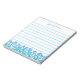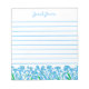 Stylish lined notepad with little blue forget me not flowers at the bottom of the page, personalised with your name. Pretty gift for garden and nature lovers.