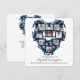 This sympathy card is designed to honour the memory of someone. Eight photos in a heart shape are set up as a template to be replaced with photos of the one being remembered. Photos of Forget-Me-Not flowers in a heart shape are featured as the background. "In loving memory of" is printed below the photos. The deceased loved one's name is next. Across the bottom is a wish for peace and comfort. The words and photos are set up to be personalised. On the reverse side is a smaller version of the floral heart design with the quote, "When someone you love