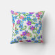 Original fine art design of colourful blue and pink Forget Me Not garden flowers by artist Carolyn McFann of Two Purring Cats Studio printed on a quality and customisable American Mojo brand pillow for all who love Forget Me nots.