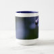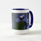 Macro photograph of forget-me-not flowers on 15oz blue ringer mug.